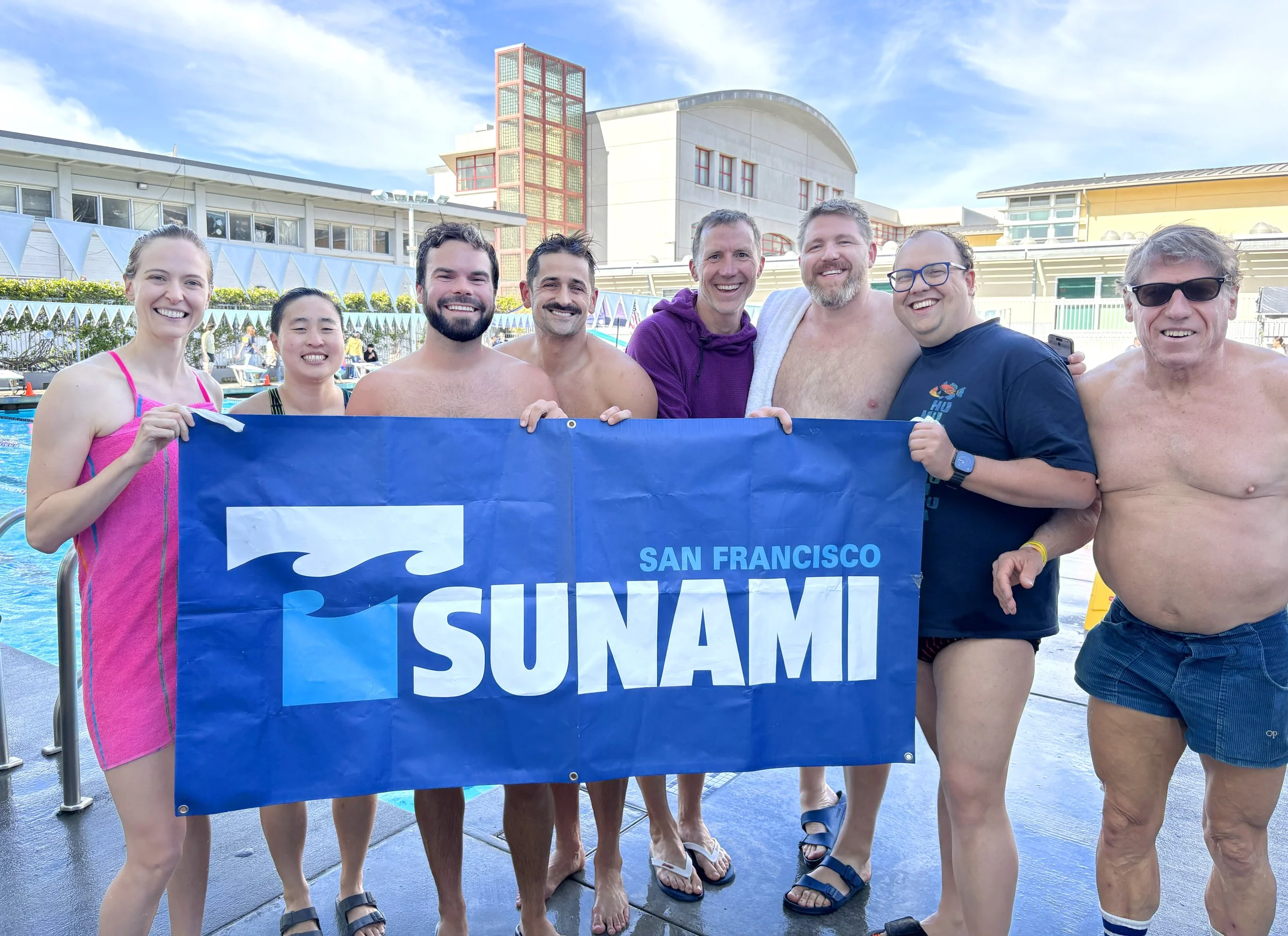 Founded in 1986, San Francisco Tsunami Aquatics is an inclusive U.S. Masters Swimming club for LGBTQ+ individuals and allies, offering both competitive and fitness swimming, as well as synchronized swimming. We welcome swimmers of all experience levels.